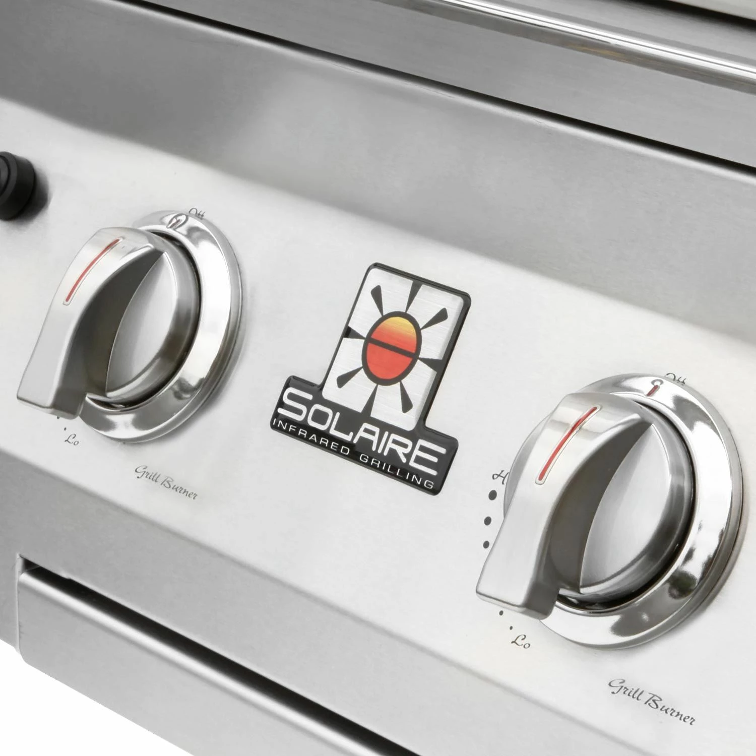 All Solaire grills offer an impressive collection of standard features to stand out from the competition. These grills offer infrared burners with ceramic plates and stainless steel construction for commercial quality cooking potential, while stainless steel V-grilling grates enhance flavor and reduce flare-ups. These impressive appliances offer 304 stainless steel construction with welded seams and no mechanical fasteners to ensure long-term durability, while hand-polished, mirror-finished accents and metal knobs offer an impressive appearance in any setting. A double skin hood with a stay-cool, stainless steel knurled handle offers added safety, while a removable stainless steel warming rack and drip tray offer added versatility and convenience. With their top-supported, self-trimming design, these grills offer easy built-in installation. This grill head can also be placed on a cart if your needs change.