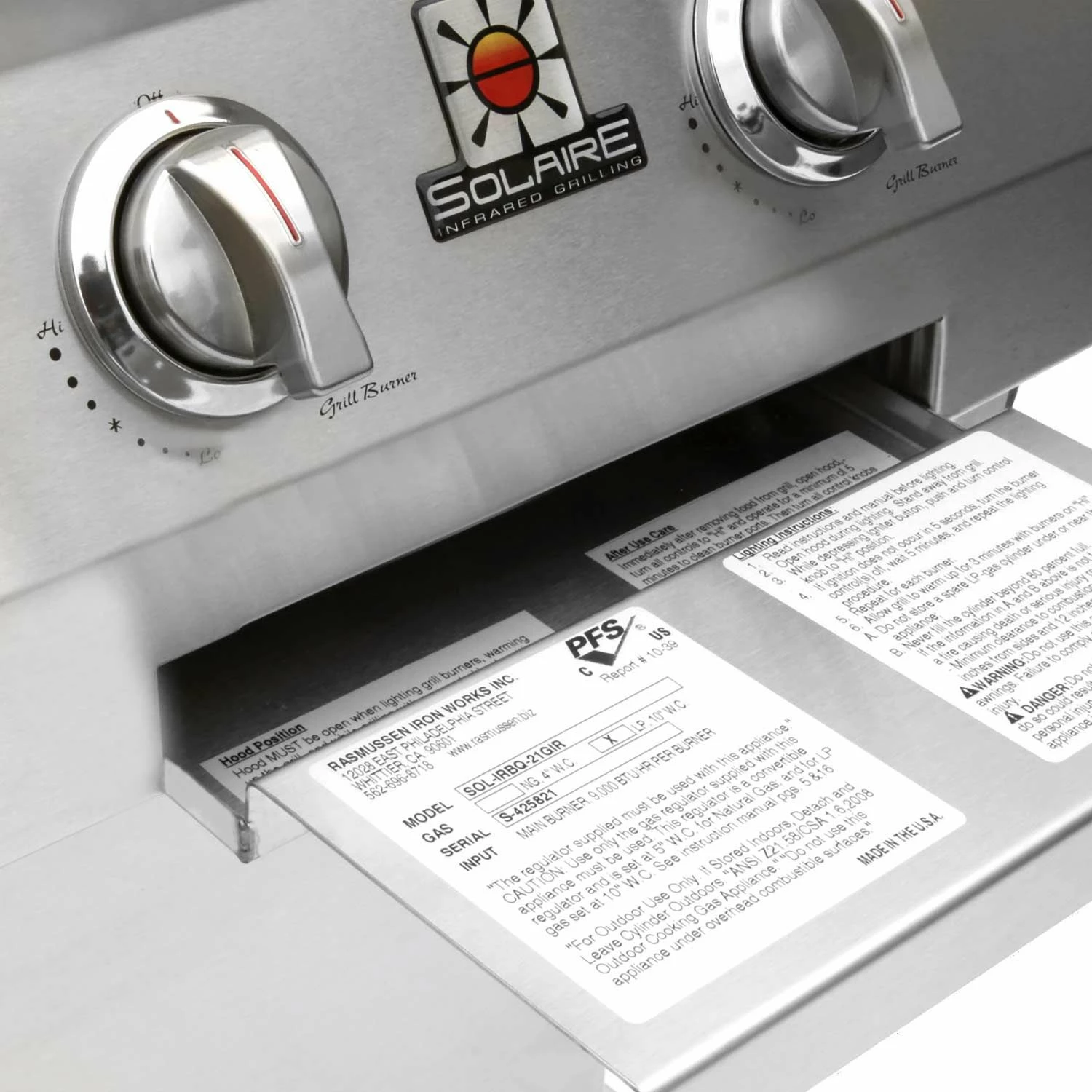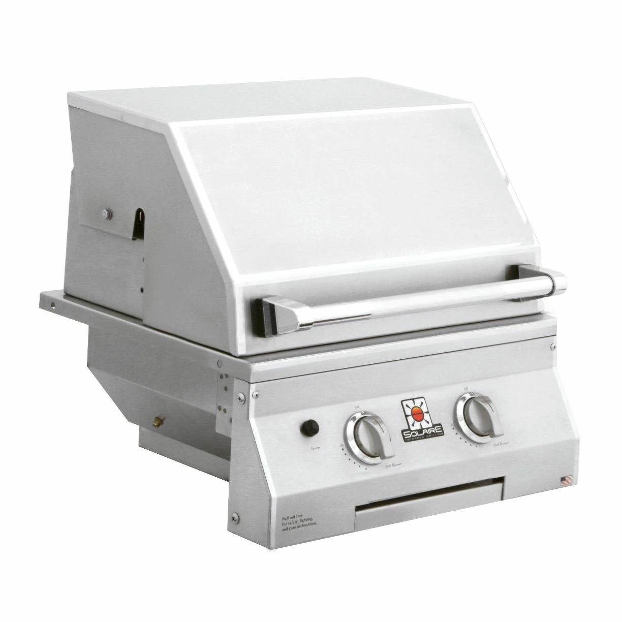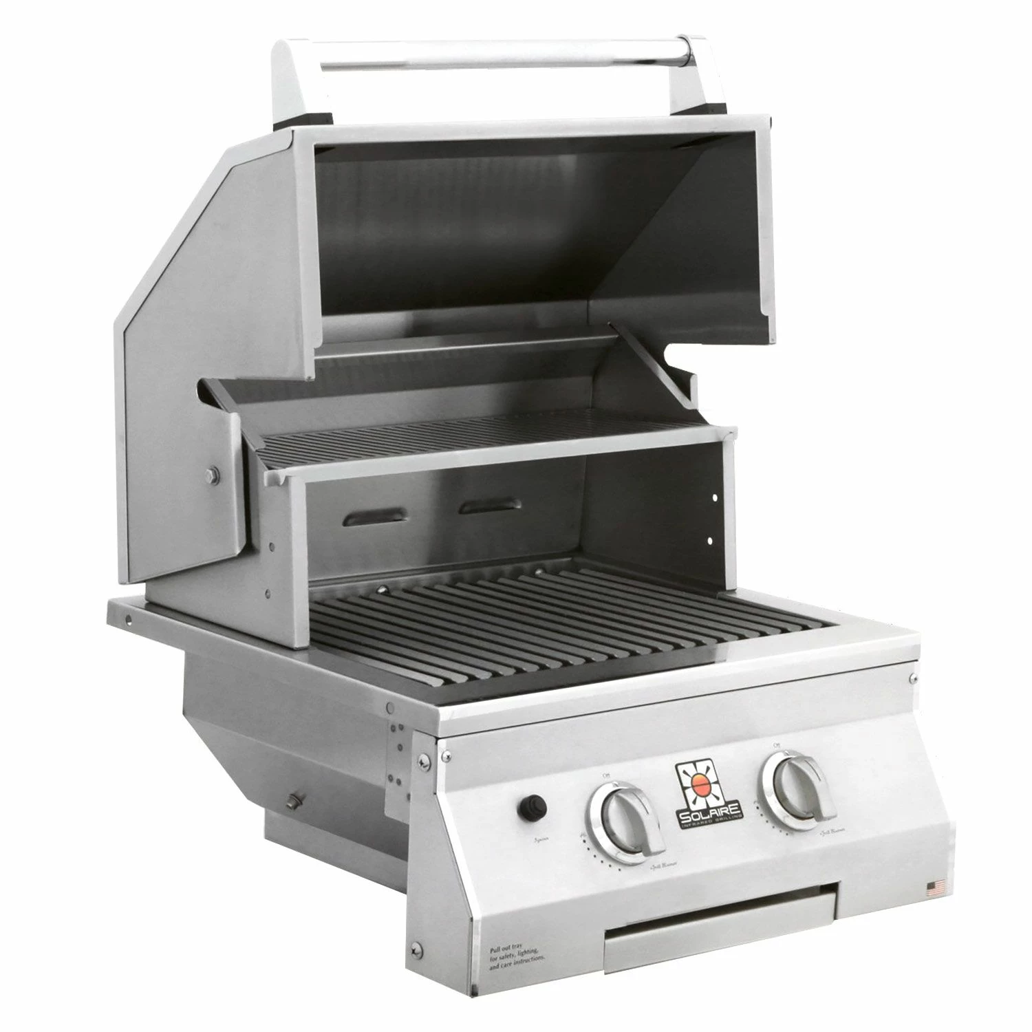 All Solaire grills offer an impressive collection of standard features to stand out from the competition. These grills offer infrared burners with ceramic plates and stainless steel construction for commercial quality cooking potential, while stainless steel V-grilling grates enhance flavor and reduce flare-ups. These impressive appliances offer 304 stainless steel construction with welded seams and no mechanical fasteners to ensure long-term durability, while hand-polished, mirror-finished accents and metal knobs offer an impressive appearance in any setting. A double skin hood with a stay-cool, stainless steel knurled handle offers added safety, while a removable stainless steel warming rack and drip tray offer added versatility and convenience. With their top-supported, self-trimming design, these grills offer easy built-in installation. This grill head can also be placed on a cart if your needs change.