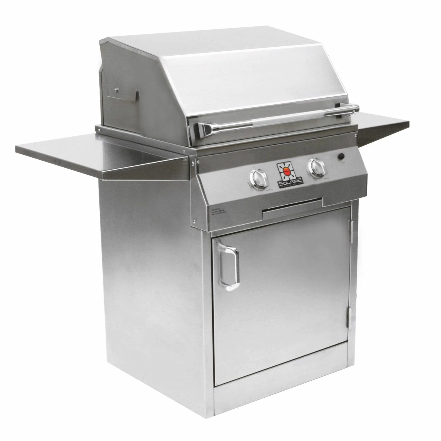 All Solaire grills offer an impressive collection of standard features to stand out from the competition. These grills offer infrared burners with ceramic plates and stainless steel construction for commercial quality cooking potential, while stainless steel V-grilling grates enhance flavor and reduce flare-ups. These impressive appliances offer 304 stainless steel construction with welded seams and no mechanical fasteners to ensure long-term durability, while hand-polished, mirror-finished accents and metal knobs offer an impressive appearance in any setting. A double skin hood with a stay-cool, stainless steel knurled handle offers added safety, while a removable stainless steel warming rack and drip tray offer added versatility and convenience. With their top-supported, self-trimming design, these grills offer easy built-in installation. This grill head can also be removed from its freestanding grill base and built into a grill island if your needs change.