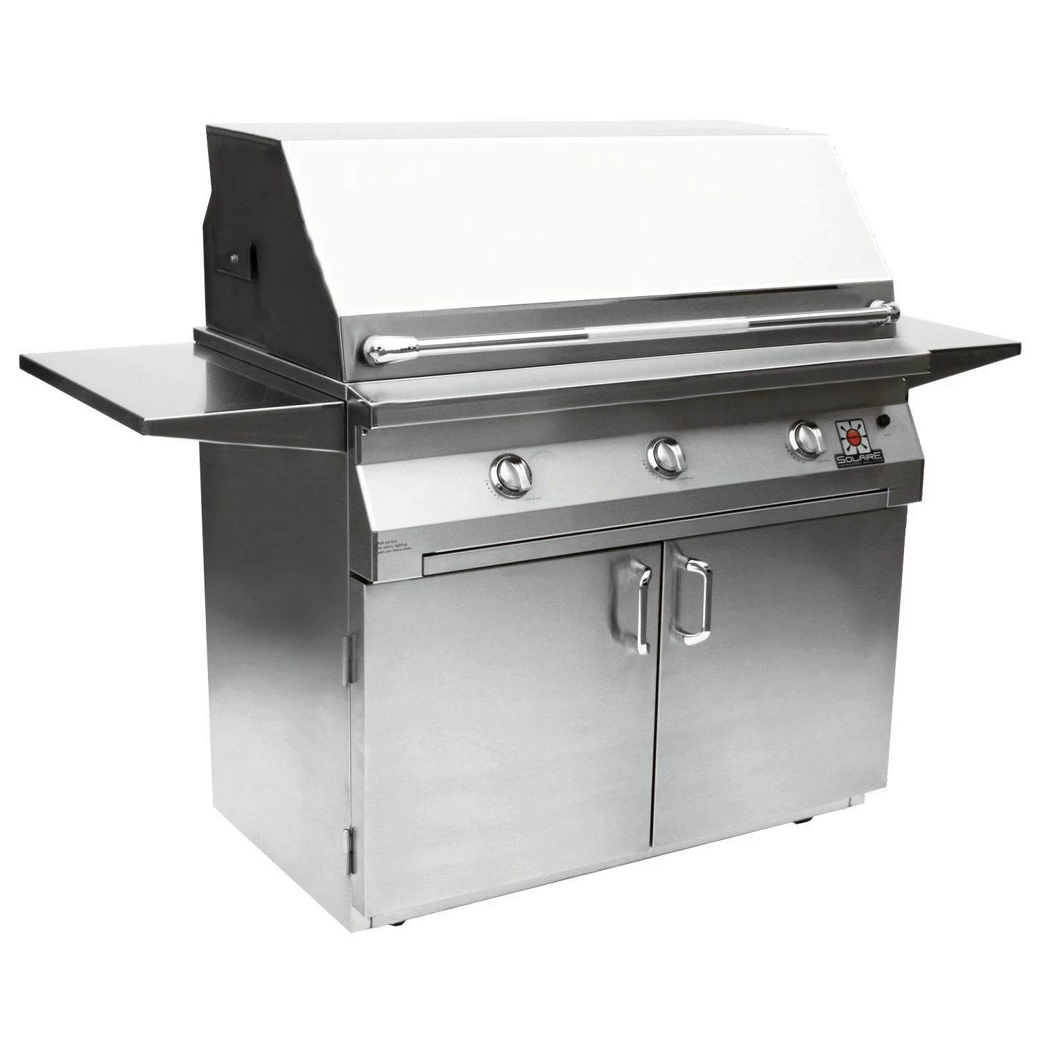 Solaire IRBQ-42 42-Inch Freestanding Grill on 2-Door Cart provides a professional quality infrared grill designed to offer an improved backyard grilling experience. Featuring three main infrared burners capable of up to 82,000 BTU, this grill offers impressive heating ability across 667 square inches of main grilling area and a total grilling area of 1,027 square inches. Select from all infrared, all convection, and InfraVection burner configurations to match your grilling needs. Your grilling experience can be further enhanced with Solaire’s large assortment of grilling accessories engineered to help you grill to your full potential (sold separately). As an added bonus, this grill features a limited lifetime warranty on all stainless steel construction, main burners, and V-grilling grids as well as a two-year warranty on its ignition system and a one-year warranty on nearly all other parts.