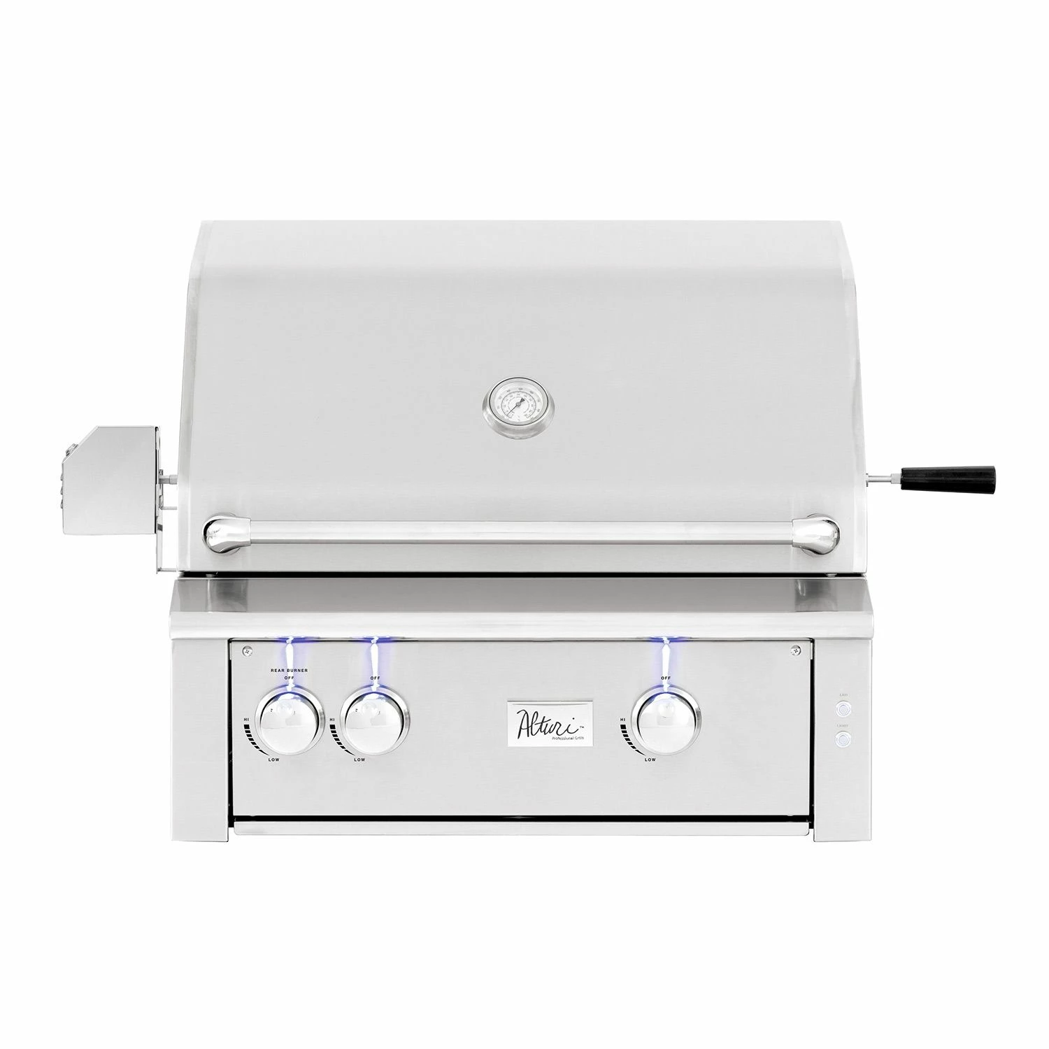 Summerset ALT30 Alturi Series Built-In Gas Grill, 30-Inch combines superior quality and high end performance to provide a terrific option to complete your outdoor kitchen. The grill features a solid 304 stainless steel construction to ensure durability and longevity while each of the (2) heavy duty stainless steel U-Tube burners, rated at 20,000 BTU, provide ultra high heat to the unique captured briquette trays. The captured briquette trays provide even radiant heat across the 780in² cooking surface and eliminate hot and cold zones as the 9mm thick stainless steel grates offer a thick gauge grilling surface for professional style grill marks.