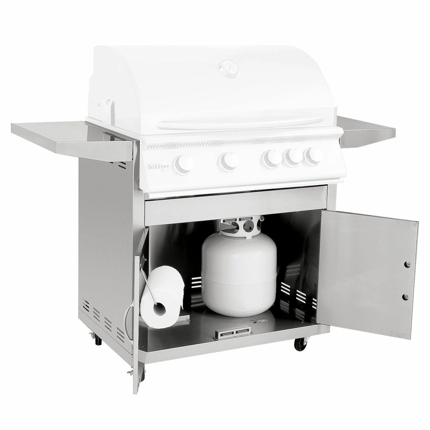- LP Tank Storage – The cabinet provides convenient storage for a standard LP tank