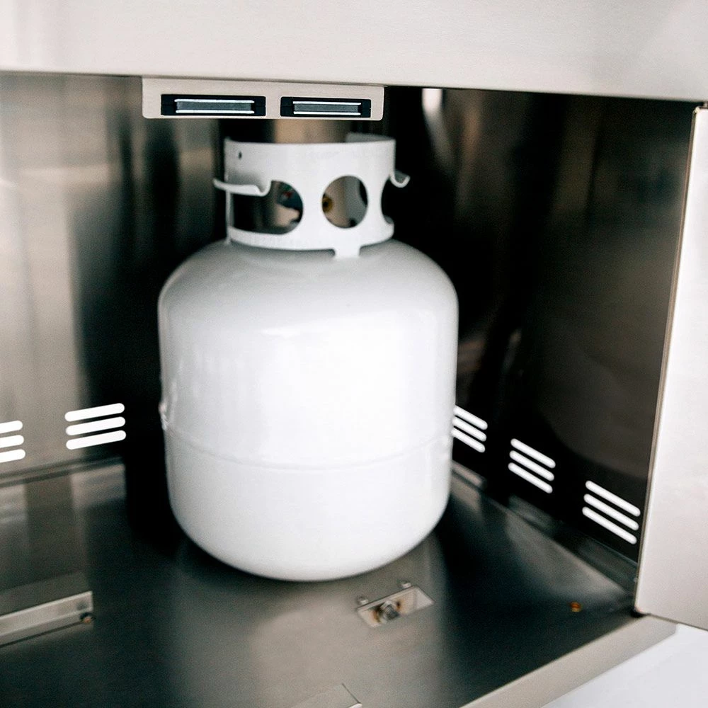 - LP Tank Storage – The cabinet provides convenient storage for a standard LP tank