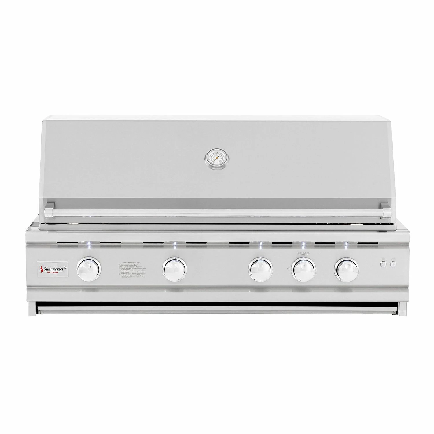Summerset TRLD44 TRL Deluxe Series Built-In Gas Grill, 44-Inch combines superior quality and high performance to provide a terrific option to complete your outdoor kitchen. The grill features a solid 304 stainless steel construction to ensure durability and longevity, while each of the (4) heavy duty cast stainless steel burners are rated for 20,000 BTU to provide high heat to the unique captured briquette trays. The captured briquette trays also provide even radiant heat across the 1200in² cooking surface to eliminate hot and cold zones. This grill features 9mm thick stainless steel grates offer a thick gauge grilling surface for professional style grill marks.