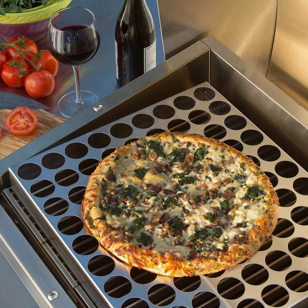 TEC PFRPIZZA Infrared Pizza Rack for Patio Series provides added versatility to your TEC grill. The heavy duty 304 stainless steel construction ensures a long lasting and durable product while the unique slotted pizza rack allows the direct infrared heat to create the perfect crisp pizza crust without drying out the pizza. Make artisan style pizzas with this pizza rack and enjoy the grilled flavors right from your TEC grill.