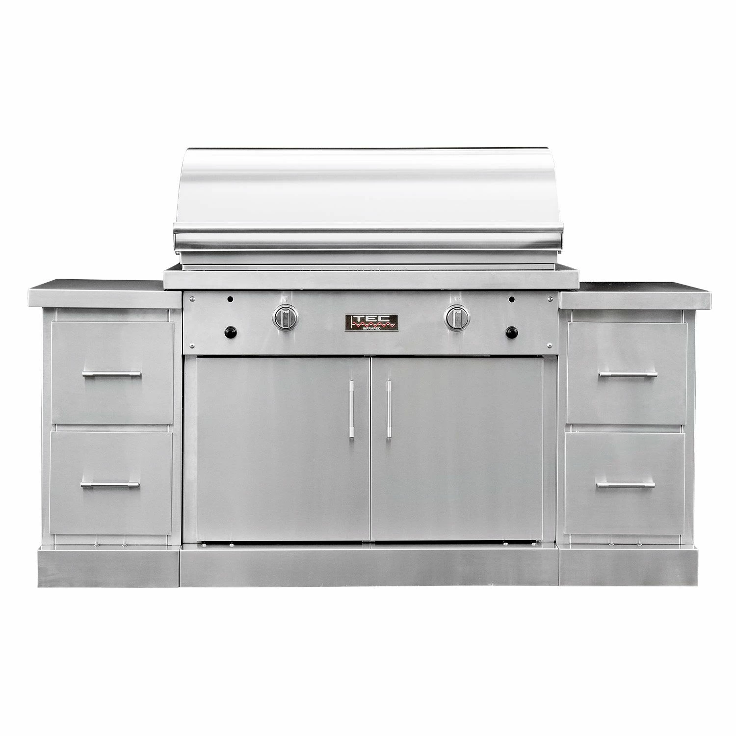 TEC Sterling Patio 2 FR Infrared Gas Grill On Stainless Steel Island, 44-Inches provides any grill enthusiast with a high performance infrared grill to incorporate into an outdoor kitchen area. The grill head features complete 304 stainless steel construction designed to provide long-term durability. The Patio 2 FR puts out more than 60,000 BTU over a 592-square-inch cooking surface while also using less than half the fuel of other infrared gas grills on the market. TEC’s infrared grill technology creates even heat distribution and eliminates moisture loss, allowing you to create meals packed with charbroiled flavor. The Patio 2 FR allows you to achieve high quality results on a consistent basis. Not just for grilling, the stainless steel cooking grates and radiant glass panels allow additional cooking methods like simmering your famous chili while grilling burgers and brats.