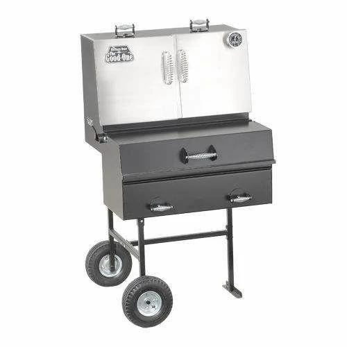 The Good-One The Heritage Oven Generation III Natural Wood Smoker and Grill, Freestanding provides a large sized natural wood smoker that creates real “pit BBQ” flavor. The Heritage Oven™ stays true to the quality and tradition expected from competition level smokers, while its innovative design ensures even cooking by moving the heat and smoke throughout the 1,199 Sq. Inches of cooking area. The newly designed extended charcoal basket allows for longer burn times, and is also available with a reverse lid design. Elevate your BBQ by returning to tradition – with the natural smokey flavor that only charcoal and wood can deliver!