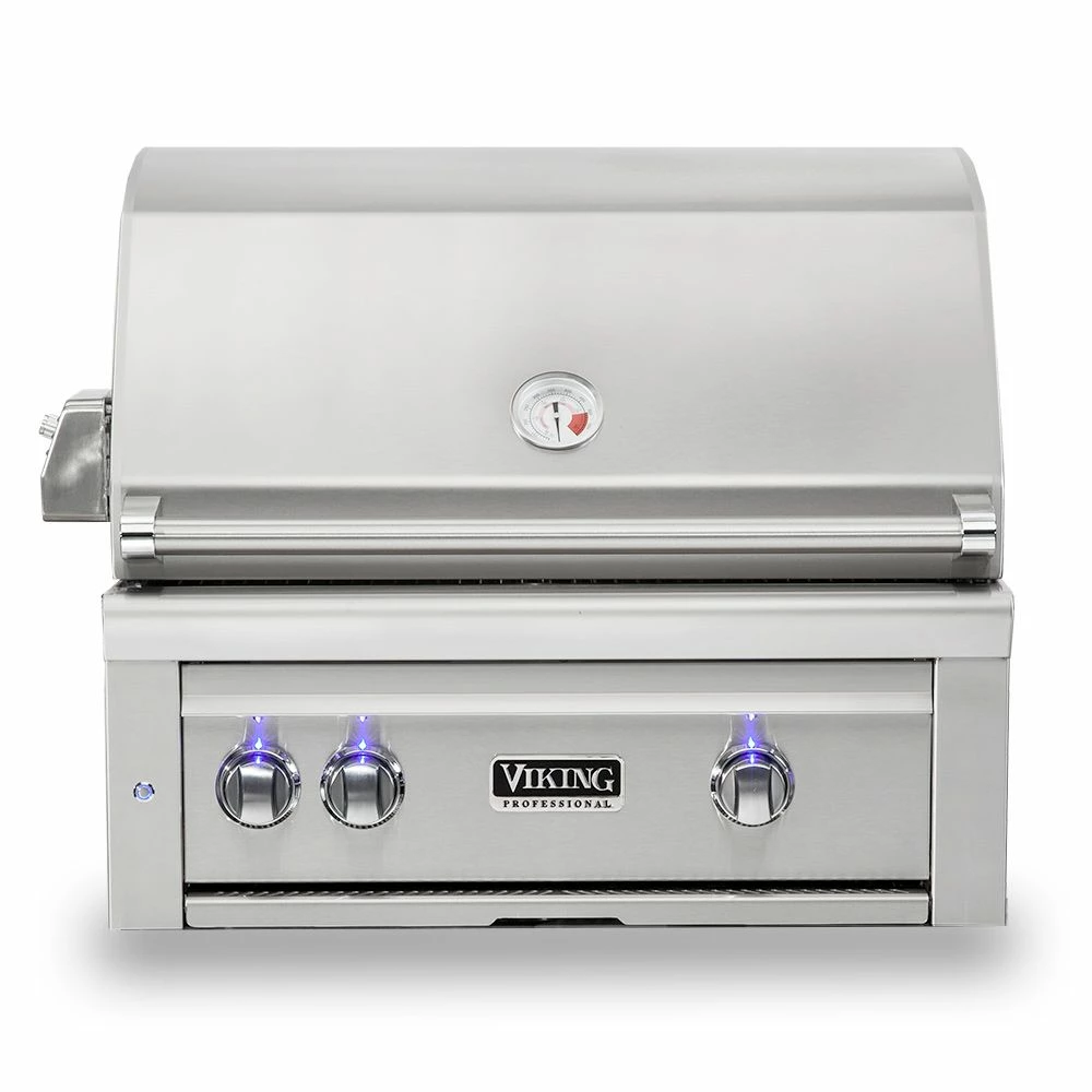 Viking 5 Series Stainless Steel Built-In Gas Grill with ProSear Burner & Rotisserie, 30-Inch (VQGI530) offers a top-of-the-line experience for the grill master who is serious about performance and quality, built from 16-gauge stainless steel to last through the years. It features (1) commercial grade cast brass burner which puts out 25,000 BTU and an infrared ProSear burner for achieving excellent color and flavor every time. As if that weren’t enough, it also comes outfitted with a dedicated infrared rear burner and heavy-duty rotisserie kit with a 3-speed motor for even more versatility. Combine all of this with the high-density ceramic briquettes providing even and reliable radiant heat across the 840in² grilling surface and you’ve got a grill that produces delicious results that are sure to impress.