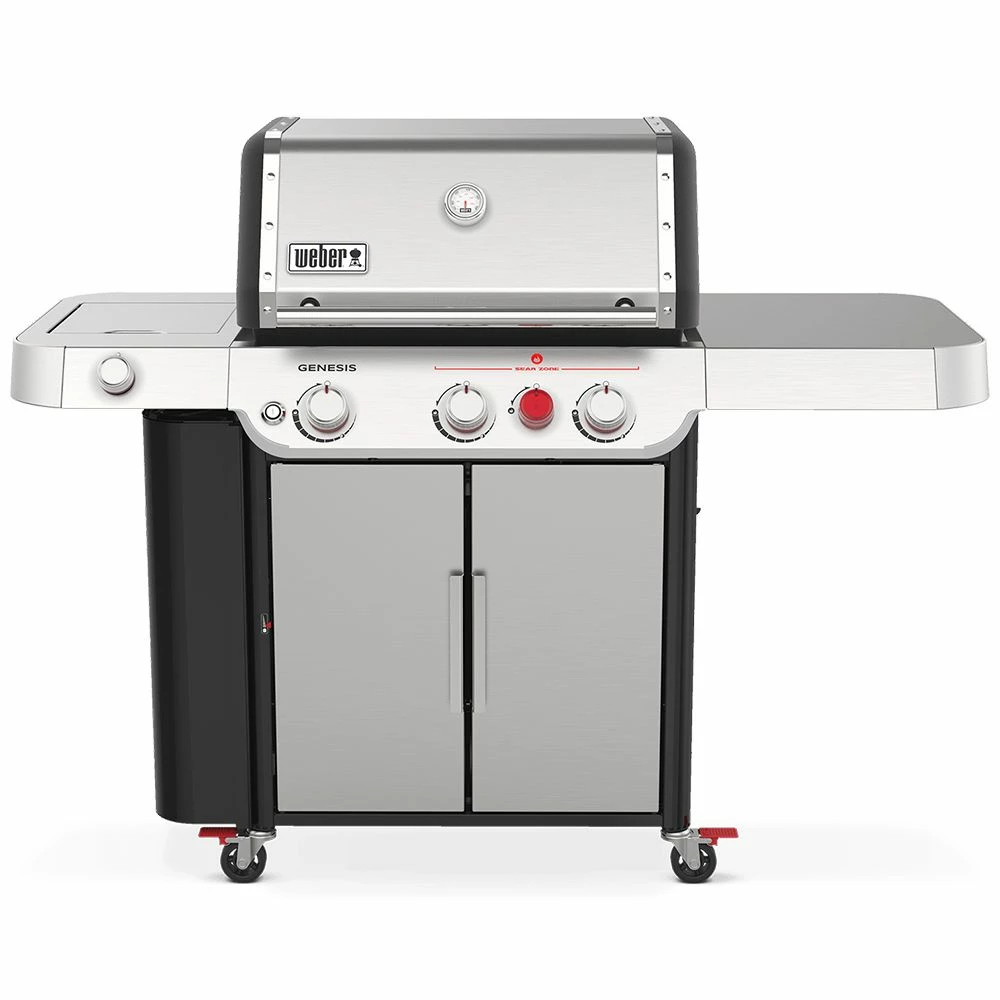 Weber Genesis 3-Burner Freestanding Gas Grill with Sear Burner and Side Burner (WEB-E-S-335) offers an upgraded grilling experience with modern convenience and tech features that are designed to make it a breeze to get great results every time. This gas grill features high performance PureBlu burners and Weber’s largest and hottest sear zone, allowing you to get those deep, rich grill marks that everyone craves. It also boasts a smart side burner, giving you more space to work your magic, and an improved grease management system that makes clean-up a snap. On top of all of that, it also gets all the fundamentals right as well. It features a surprisingly sizeable grilling area augmented with an expandable upper grate for even more flexibility, whether you’re toasting buns or just keeping things warm until dinner time. Finally, it also includes a side mounted locker with room for all your grilling accessories. All in all, the Weber Genesis gas grill is a premium combination of quality craftsmanship and innovative features.