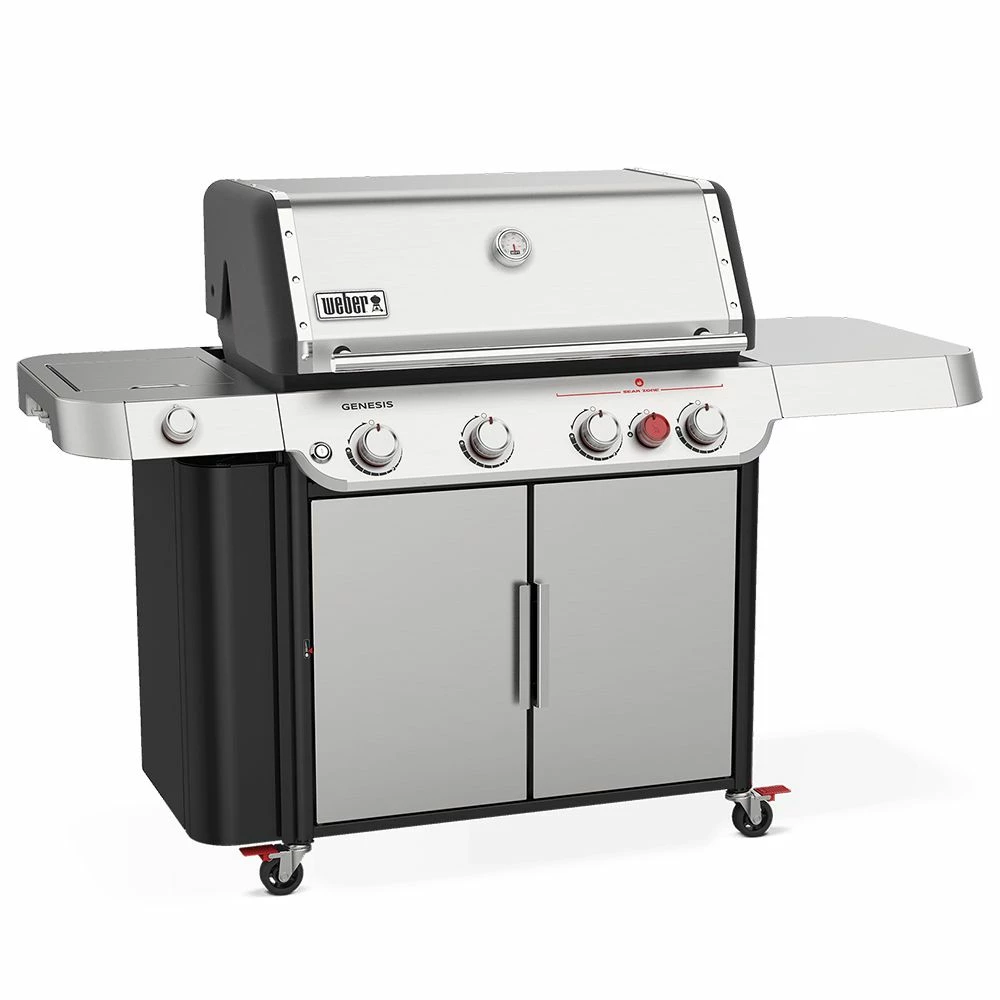 Weber Genesis 4-Burner Freestanding Gas Grill with Sear Burner and Side Burner (WEB-E-S-435) offers an upgraded grilling experience with modern convenience and tech features that are designed to make it a breeze to get great results every time. This gas grill features high performance PureBlu burners and Weber’s largest and hottest sear zone, allowing you to get those deep, rich grill marks that everyone craves. It also boasts a smart side burner, giving you more space to work your magic, and an improved grease management system that makes clean-up a snap. On top of all of that, it also gets all the fundamentals right as well. It features a surprisingly sizeable grilling area augmented with an expandable upper grate for even more flexibility, whether you’re toasting buns or just keeping things warm until dinner time. Finally, it also includes a side mounted locker with room for all your grilling accessories. All in all, the Weber Genesis gas grill is a premium combination of quality craftsmanship and innovative features.