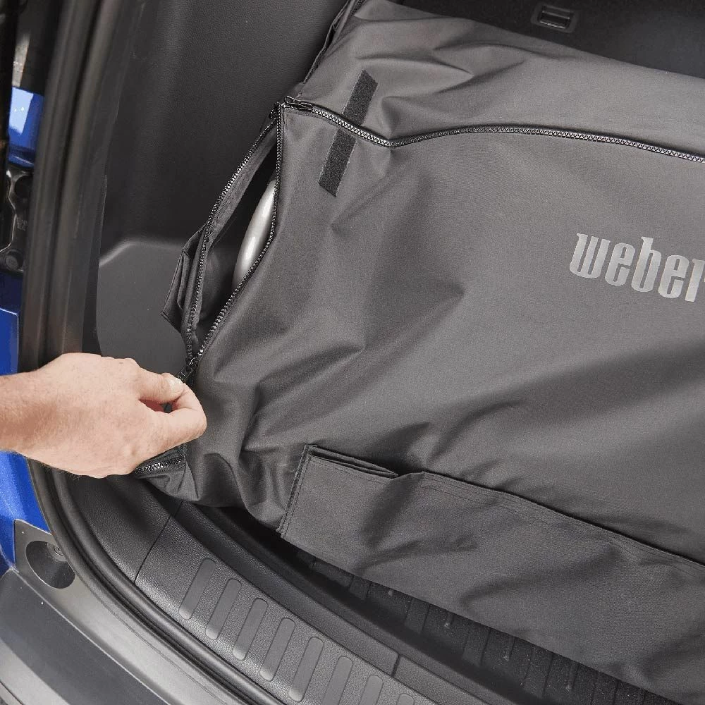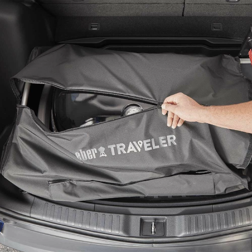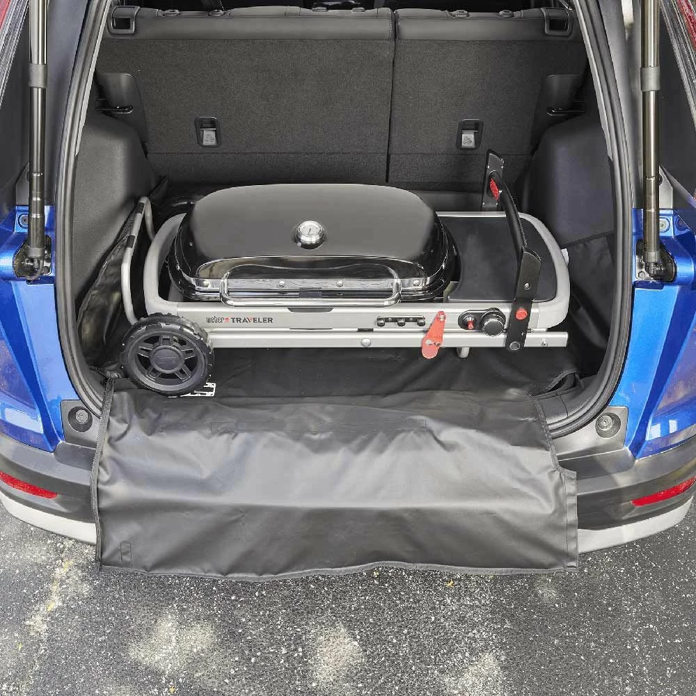 Weber Grill Cover and Cargo Protector for Traveler Series (WEB-7030) provides a smart way to transport your Weber Traveler Grill without worrying about getting grease or other residue in your vehicle. It features integrated storage pockets to store your grilling tools on the go for an all-in-one solution.