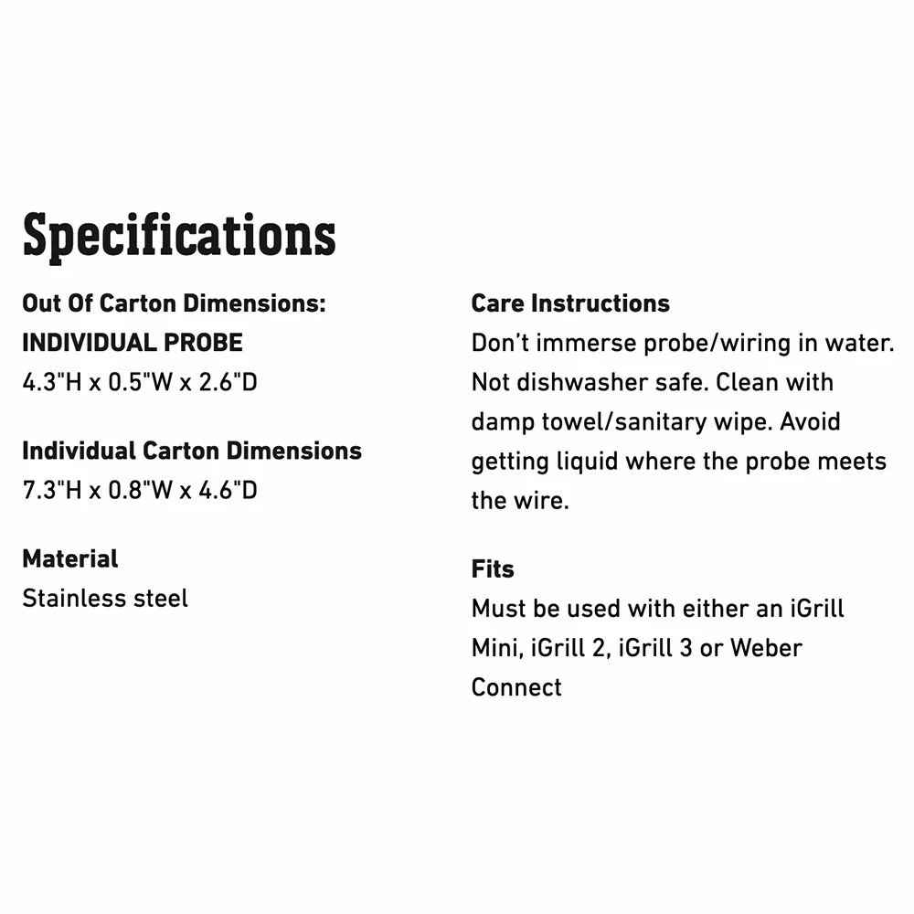 Weber iGrill Pro Ambient Probe (WEB-7212) offers a smart replacement part for your Weber iGrill App-Connected Thermometer. Easy plug and play functionality makes it a snap to Connect this probe to your iGrill hub and then clip it to the grill grate for accurate real time grill temperature tracking.