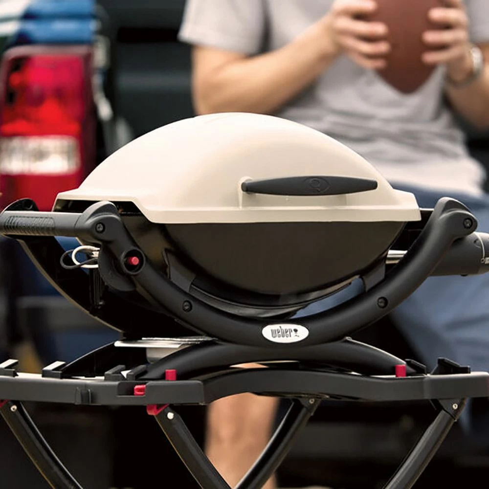 Weber Q1000 Portable Propane Gas Grill on Scissor Cart (WEB-50060001-WEB-6557) offers surprising utility in a seriously compact package. The Weber Q 1000 Series grill is the smallest portable gas grill in their collection, making it easy to take with you on camping trips or any other scenario where you need to grill on the go. Despite its small size, it provides smart features like porcelain enameled cast iron cooking grates and a durable stainless steel burner for impressive performance.